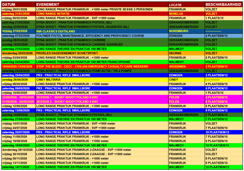 VANAF SEPTEMBER 2025 ZULLEN ER NIEUWE WORKSHOPS HERLADEN, GIETEN EN COATEN, LONG RANGE THEORIE, AR15 ARMOURERS COURSE, GLOCK ARMOURERS COURSE,... WORDEN BIJGEPLAND. DEZE ZULLEN BEKEND GEMAAKT WORDEN GEDURENDE HET JAAR.